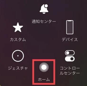 すると、画面上に小さな円形のボタンが表示されます。それをタップすると、ホーム、ジェスチャ、カスタム、通知センター、デバイス、コントロールセンターの6つのオプションが表示され、ホームボタンの代替として使うことができます。