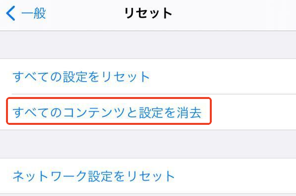 Step2:「すべてのコンテンツと設定を消去」オプションをタップします。