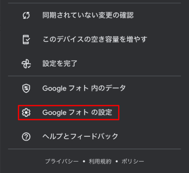 「Googleフォトの設定」を選択する