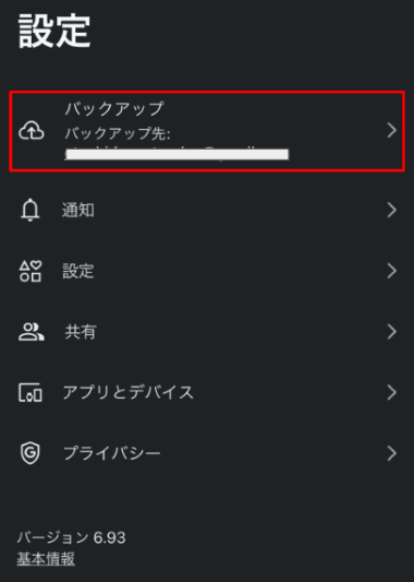 Step3. 「設定」>バックアップをオフにします。