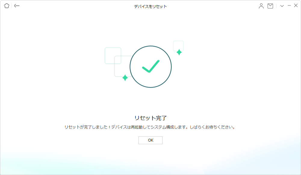 Step3.「ダウンロード」ボタンをクリックして、iPodに対応するファームウェアを取得します。その後、AnyFixが自動的にリセットを開始します。プロセスが完了するまで待ち、以下のような「リセット完了」画面が表示されたら終了です。