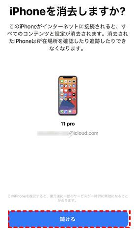iPhoneがオフラインの場合、消去リクエストはインターネットに接続された時点で実行されます。