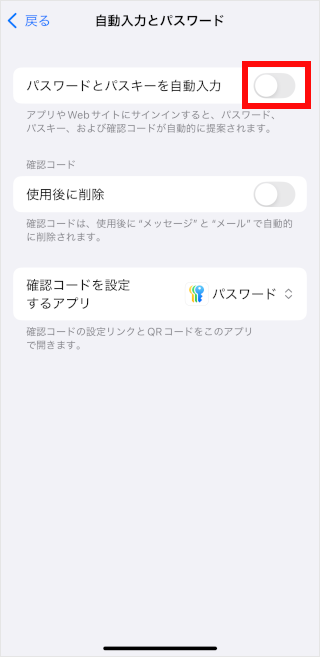 Step1.「設定」>「パスワード」>「自動入力とパスワード」に移動し、「パスワードとパスキーを自動入力」がオンになっていてください。
