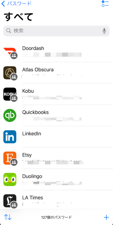 Step4:変更または削除したいパスワードを選択します。右上の編集をタップすると個々のパスワードを変更または削除できます。パスワードを追加したい場合は、右下の「+」をタップし、新しいウェブサイトとパスワードの組み合わせを手動で追加できるます。