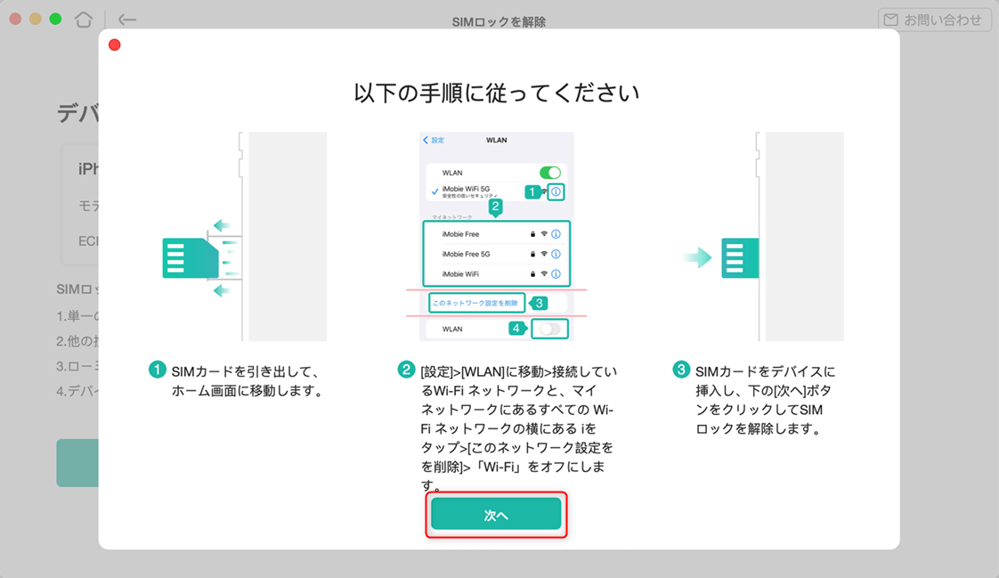 Step3. 画面の指示に従い、iPhoneで「このネットワーク設定を削除」を選択し、SIMカードを再挿入します。