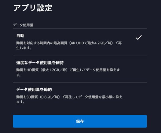 Step4. 最高品質(最大4K UHD)を楽しむために「自動」を選択します。これで対応している場合、自動的に4Kコンテンツをストリーミングできます。