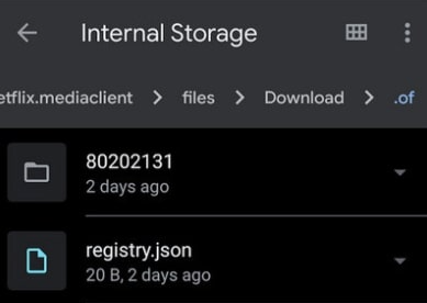 Step2:内部ストレージ > Android > data > com.netflix.mediaclient > files > Download > .of へ進みます。