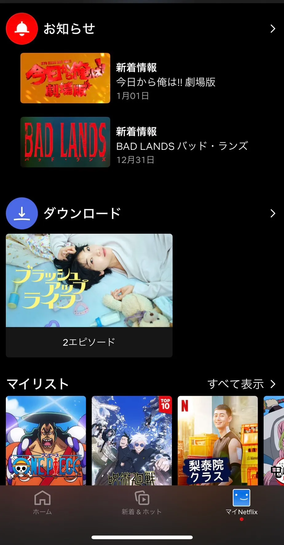 Androidスマートフォンの場合は方法が異なります。Netflixアプリ内では、ダウンロード可能な映画や番組は簡単に確認できます。画面右下の「マイダウンロード」をタップするだけで表示されます。