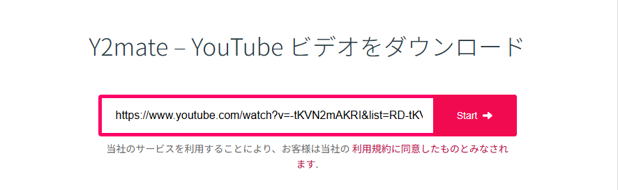 Y2mateにURLを貼り付け