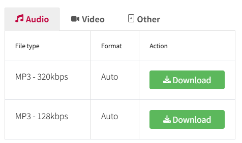 Step2: URLを貼り付けた後、検索バーの下にさまざまなオーディオおよびビデオ形式で動画が表示されます。