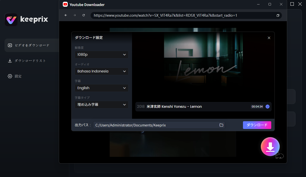 Keeprixを使ってURLを貼り付けて動画をダウンロードする手順:
